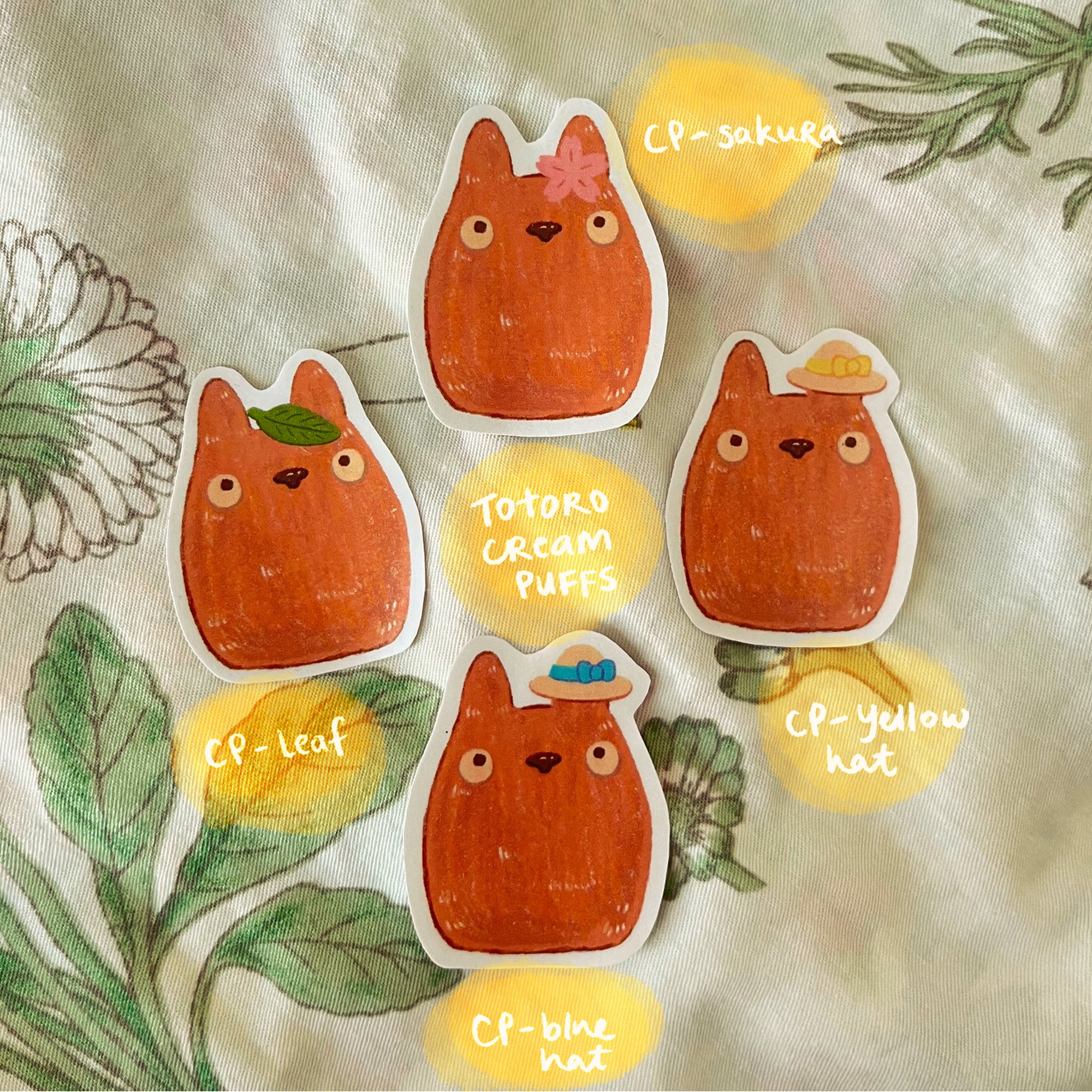 small totoros: ~1" x 1" in die cut with matte finish + NOT weather/water resistant!!